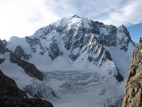 Ráno je opět krásně, vstáváme brzy, abychom slaňovali za mrazu. Celkem bez problémů se dostáváme 400 m stěnou na ledovec a teď už jen dolů. Na Uťjuku nás zve Bělorus na čaj a chválí nás za výstup, prý nás včera pozorovali. My ale odmítáme, chceme projít ledopád, dokud je alespoň trochu zmrzlý.