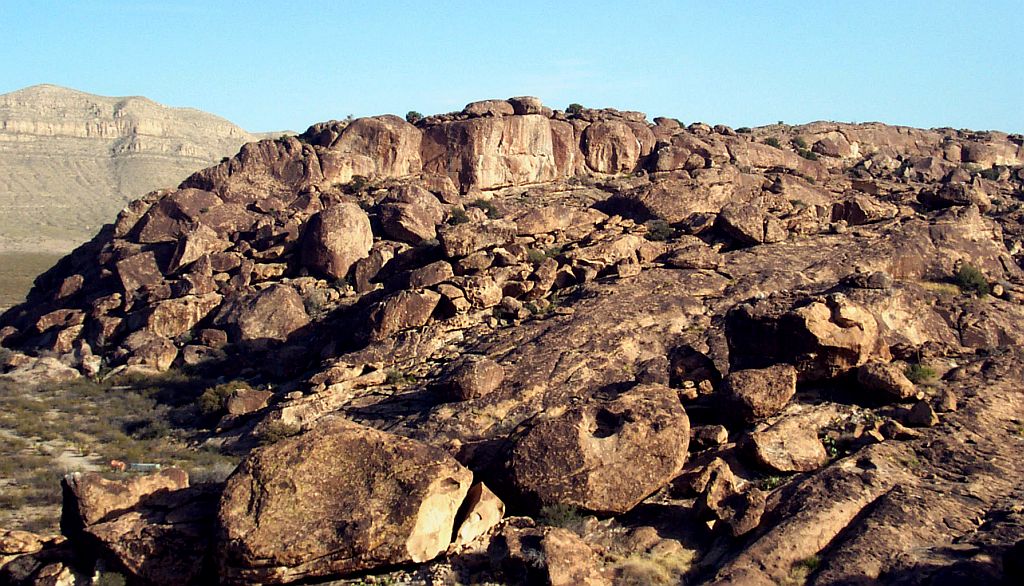 Pohled na vystouplou kamenitou výšinu v Hueco (Hi res)