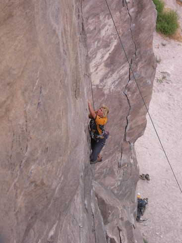 Pro ty, co se rádi nakládají do své vlastní kyseliny mléčné, má soutěska nachystánu lahůdku s názvem Eldorado Roof, mohutnou střechu nad východním břehem řeky. Obtížnost cest kolem 5.12 plus celá řada projektů. Dobyvatelé věží se budou muset spokojit pouze s několika polověžemi v sektoru Gorgeous Tower, zato však budou obklopeni mohutnými stěnami a pod zadnicí jim bude řičet Owens River. Obtížnost cest je prý celkem přesně ohodnocená, ovšem lezci z Východu mají obvykle jiný názor. Kdo s přehledem valí US desítky v takových oblastech na Východě, jako jsou Red River Gorge nebo New River Gorge, může si tu udělat osobní rekord a s klidem si střihnout nějakou tu jedenáctečku. S podobným “nadhodnocováním” jsem se ale setkal také v Dakotě, Coloradu či Wyomingu, takže spíš nabývám dojem, že některé oblasti na Východě jsou podhodnocené. Co se týče charakteru skály: řada sektorů jako by z oka vypadla našim sopečným oblastem u Nečtin: Kozelce a staronové oblasti vytvořené středočeským guru Algenou a jeho příbramskou partičkou - Polínku. Je to prostě takové Makropolínko. Materiál v zásadě stejný, nýty trošku dál od sebe a tak o deset metrů delší cesty, některé jsou ale vysoké až 35 metrů. Spousta zářezů a kapes, lišt všech velikostí, směrů a náklonů, sem tam nějaká ta dírka, spár poskrovnu. Často lezené cesty (např. Gorgeous 5.10a na Gorgeous Toner) jsou notně zapatlané maglajzem. Doporučuji šedesátku lano, sadu zhruba deseti expresek, zdaleka nejdůležitější je ale pořádný kanistr s vodou. Voda z řeky prý není pitná, což dost dobře nechápu, když s ní zásobují město dole v údolí. Pak je tu ještě jedna nepříjemnost: občas tu zafuní vichr z hor a zvedá mračna prachu. Každopádně musíte mít pořád na paměti, že lezete v nemilosrdné polopoušti obývané nejen suchem, ale také hady a ještěrkami. Bacha na chřestýše!