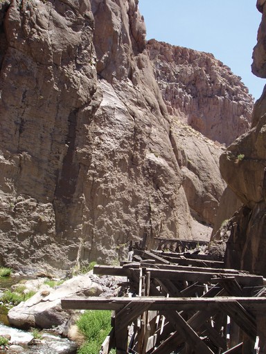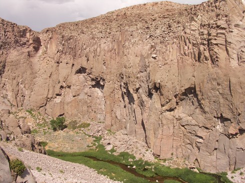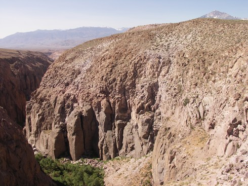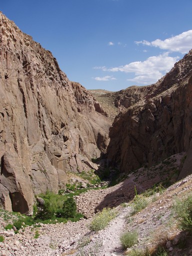 Celé okolí Bishopu je sopečného původu a podloží údolí Owens Valley je tvořeno sopečným tufem. Na sever od Bishopu se říčka Owens River nekompromisně prodrala nánosy lávy a zanechala tak po sobě brutální díru v zemi dlouhou 16 km – takový malý dárek všem skalkařským nadšencům. V horní části soutěsky je vodní nádrž, která zásobuje Bishop. Příjezd k hraně soutěsky vypadá trošku nevábně, projíždíte kolem potrubí, které vede vodu do města. Nenecháme se ale odradit a vzhůru dolů suťovištěm přímo pod stěny. Horní partie soutěsky tvoří fantastické formace sloupcového rhyolitu. Pro svoji lámavost jsou ale k lezení nevhodné.