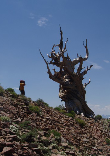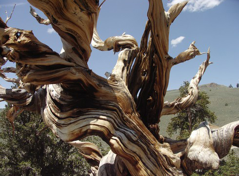 Ne, tento strom není mrtev. Je jen hodně starý. Ancient Bristlecone Pine Forest.