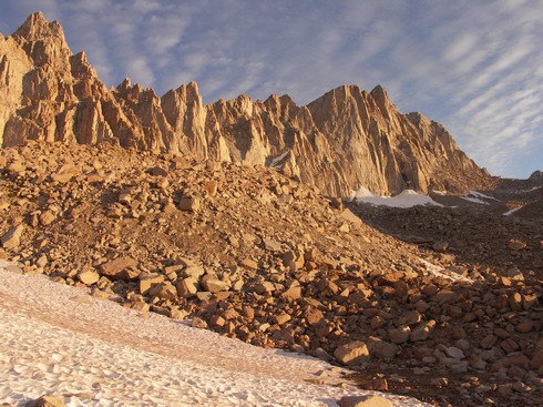Jižní hřeben Mount Whitney z tábora Trail Camp.
