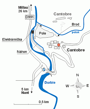 Cantobre se nachází 29 km od Millau, v kraji Aveyron. Vedle hlavní stěny je zde několik dalších stěn. Přístup je kolem 20 minut.