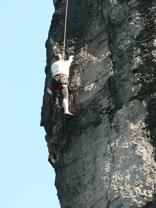 Registrace   |   Tři pevné body prvolezce: Naděje, že nahoře půjde založit, Láska i ktomu nejtitěrnějšímu chytečku a Víra ve svého výborného jističe.