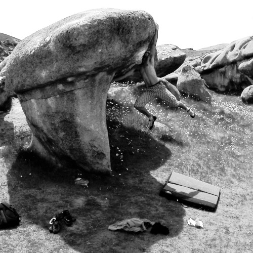 Tolik lidi jsme v Castle Hill ještě neviděli. Většinou (což znamená téměř každý víkend) se tam poflakujeme téměř sami a pouze občas narazíme na někoho snažícího se překonávat zdejší “mantle problems”. Minulou sobotu se však v jedné z částí Castle Hill jménem Spittle Hill objevilo přes 120 lezců všech věkových kategorií a národností, kteří od deseti hodin ráno do tří hodin odpoledne pobíhali pod žhnoucím sluncem mezi 150 označenými bouldrovými problémy obtížnosti od V0 až V11. Soutěž probíhala v naprosto uvolněné atmosféře a až na jednu zlomenou nohu to nemělo chybu.