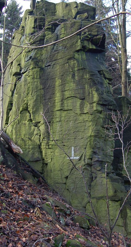 Při cestě na rozhlednu uvidíte vlevo březový hájek, v něm se ukrývá ještě jedna nízká skalka s možností několika krátkých lehkých boulderových cest.