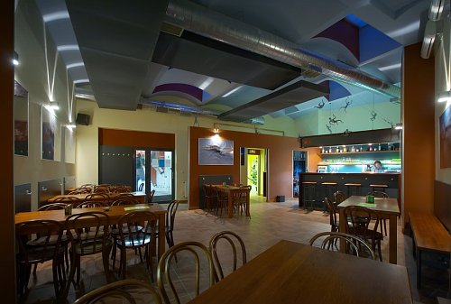 Bar – v baru se nachází i recepce stěny. Počet míst k sezení je 60 a najdete zde i malou místnost s fotbálkem a pohovkou.