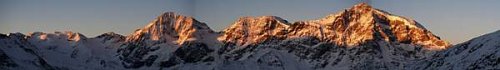 Druhý den v 6 ráno s jistotou počasí vyrážíme z Innersuldenu směr Schaubachhutte, Moňa začíná před odbočkou na Eisepaas promrzat (snad i omrzat), chybí energie, snažím se ji povzbuzovat, ale únava a mráz je již znát. Moje snažení a naše společná vůle se projeví výstupem do 2/3 trasy s dodržením časového plánu navíc s krásným výhledem ze Suldenspitze k nedosaženému vrcholu Cevedale. V oblasti Ortleru je možno podnikat velké množství aktivit spojených s očucháváním krás místních hor.