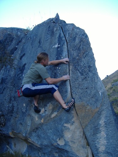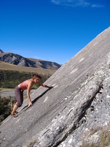 Pod vlivem minulé neděle jedeme opět do Prebble Hill. Tentokráte jenom ve třech (Stračena, Katja a já). Počasí je již klasicky úžasné, údolí stráží putangitangi (místní rackokachny) a my se opět ocitáme sami mezi kameny. Je vidět, že kluci se během týdne činili. Volných linií ubylo. Nakonec se nám mezi koupáním v řece povede udělat pár lehkých boulderů a přelézt i několik problémů od kluků.