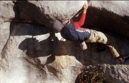 Nástup do mantlu v boulderu Little Balls (V6)