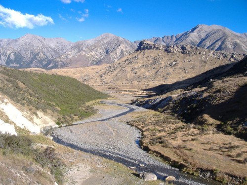 Údolí Broken River, v pozadí svahy Prebble Hill