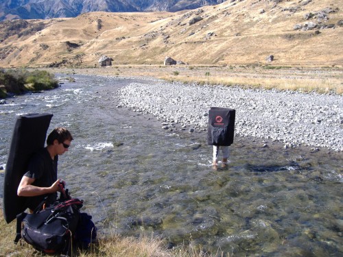 No a pak shodou okolností potkáváme Honzu Zbranka s Davidem Shinzelem, kteří nás seznamují s Ivanem Voštinářem, autorem místního lezeckého průvodce. Domlouváme se, že v neděli půjdeme objevovat novou oblast na úpatí Prebble Hill, kousek od Castle Hill. Nakupujeme kartáče, vyzvedáváme kluky v kempu Craigieburn, přesunujeme se na parkoviště u Cave Stream a téměř poklusem  vyrážíme pěšinou nad údolím Broken River ke svahu v dáli.