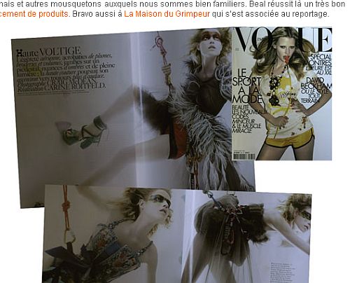 Jak píše francouzský lezecký web escalademag.com, módní návrhář firmy Dior John Galliano použil lezecké prostředí pro prezentaci módy od firem jako je Puma, Nike, Chanel, Christian Lacroix nebo Lacoste.