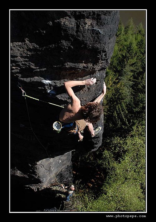 Obdivuji Adamovy výkony, ale nesmekám....smekal bych a vážil si ho kdyby tam kde je to zakázané s maglajzem nelezl neb tyto fotografie ukazují mnohým tupcům, že maglajzovat je obecně super a tím mě a ostatní lezce zbavují možnosti lézt svobodně po písku bez bílých skvrn a jasných linní.