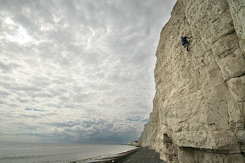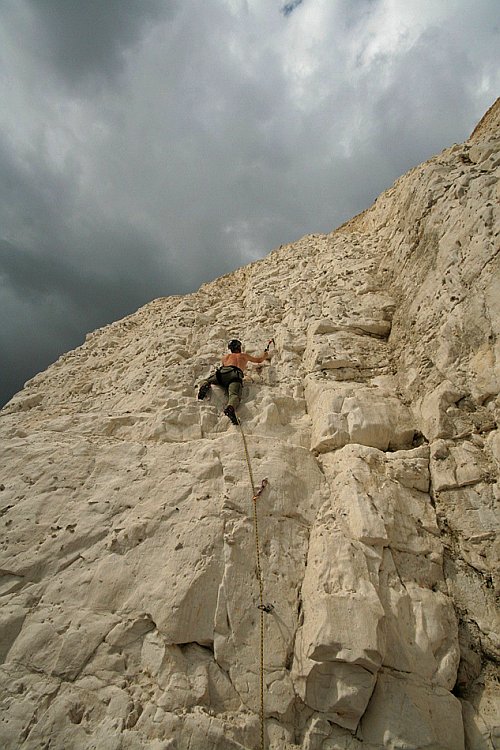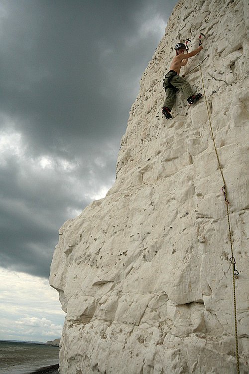 Do doby než byl otevřen tunel pod kanálem, každý návštěvník Anglie jako první spatřil bílé útesy Doverské. Tyto křídové útesy se táhnou podél  pobřeží v délce několika desítek mil. Jednoho krásného dne je objevil ledu chtivý anglický lezec, mokra křída se v ledasčem podobá ledu. Od těch dob se nedaleko Brightonu pravidelně trénuje. My jsme si zalezli výborně a více než slova snad řeknou fotky…