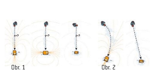 Jakmile zachytíte signál vedoucí k zasypanému, nastává druhá fáze vyhledávání, kdy vás přístroj navádí do bezprostřední blízkosti zasypaného [obr. 2]. Důležité je, aby vás přistroj naváděl co nejkratší cestou, bez zbytečných oklik. DAV testoval přístroj ve dvou pozicích, s anténou položenou horizontálně, a s anténou umístěnou vertikálně.