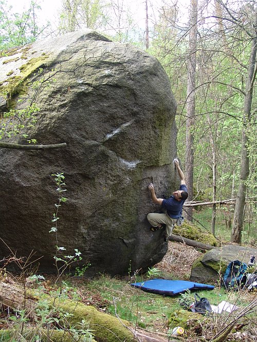 5a Muž Přes Palubu 6C+ položená těsně vpravo od hrany a plotýnkou na vrchol