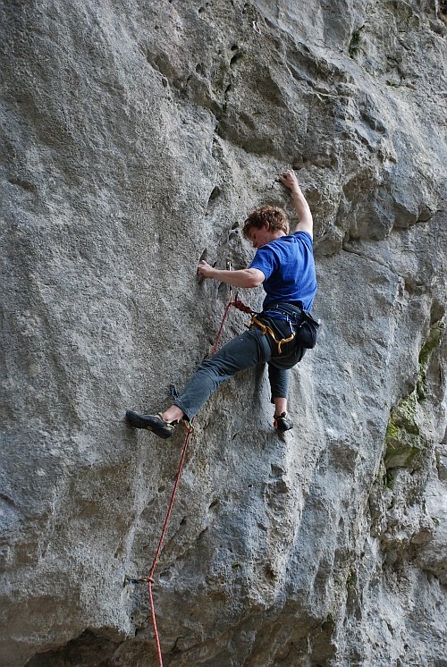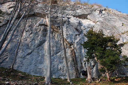 Langenstein - Menší stěna co do šířky, avšak nabídne pěkné lezení v převislých stěnách za převážně dobré ostré chyty.Když prší dá se lézt.
