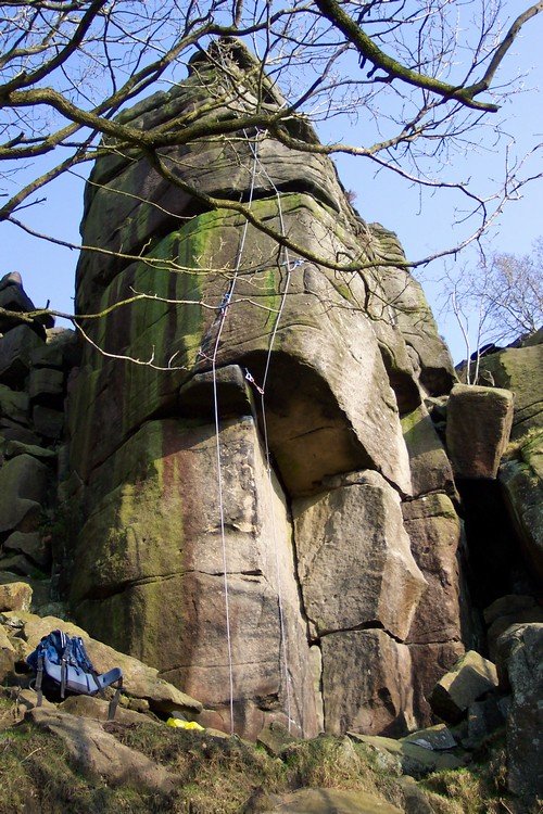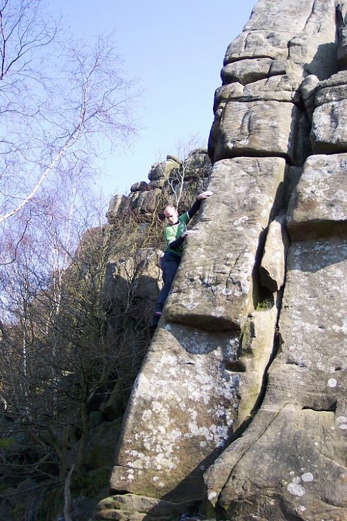 Snad v každém z "crags" co jsem kdy v Peak Districtu byl by člověk stězi udělal ohýnek na opečení tuctů buřtíků kvuli nedostatku k tomu potřebnému stromovi. Ale ne tak v Gardom's. Stěny se derou z nezvykle hustého porostu, který se dá opravdu nazvat lesem. Já bych to nazval listnaté svinstvo, protože jsem z hloubi duše jehličnatě smíšený člověk Českého ráje.