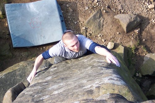 Jako poslední jsme si oba vytáhli tří - hvězdičkovou cestu the Eye Of Feith, E1 5c na Elliott's Buttress. Bandaskovací záležitost - zapeklitý traverz pod převisem a přehoupnutí přes jeho převislou hranu pomocí prstové spárky. Zbytek už byla krasojízda k vrcholu.