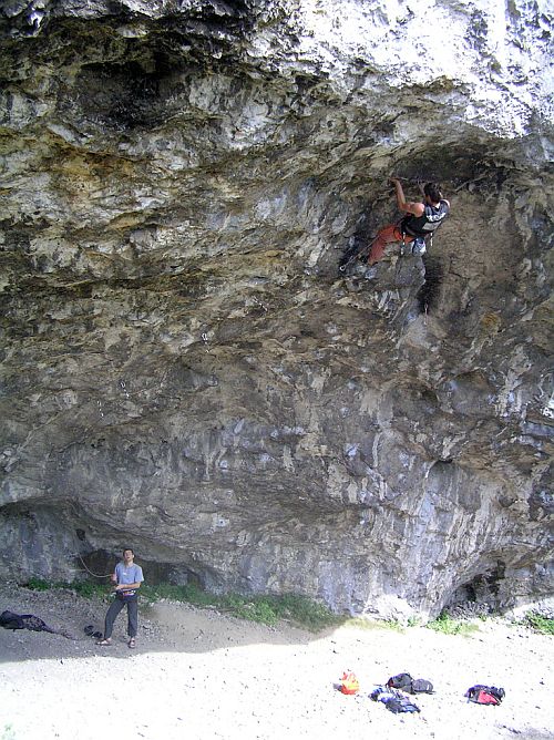 Ale taky leze po sekaných cestách např. Reini S' Vibos 8c+ a pár jiných těžkých cest v Arcu, můžu dále pokračovat cesty v Gorges de Loup, Některé cesty v Ospu-Misink link 8b+ a myslíš že na nich neleze světová špička, to se teda pěkně pleteš, samozřejmě někteří na nich nelezou, ale to je menšina.