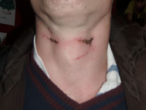 2) Lano se při pádu může zachytit také o nějaký větší chyt, takže přinejmenším spálení krku v tomhle případě nastane. Spáleniny od lana jsou nepříjemné a blbě se hojí.