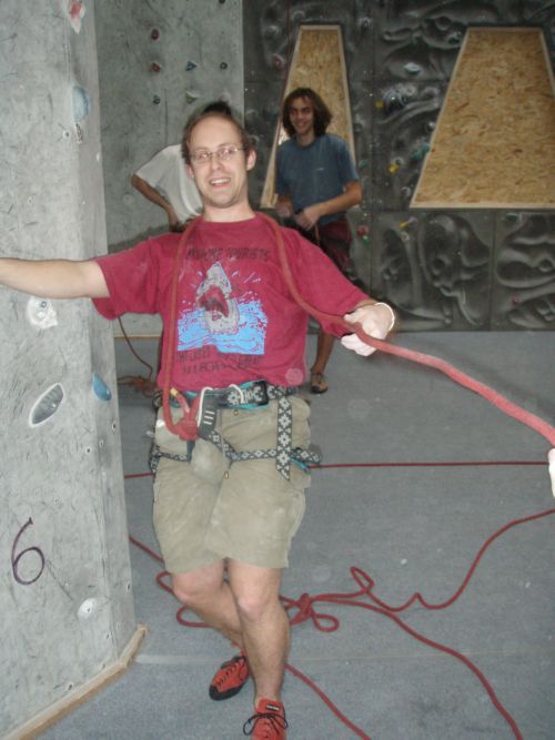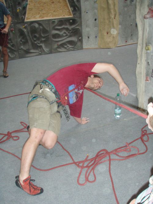 Taky jsem si všiml, že na stěnách se ti, kteří sami sebe pasovali na již pokročilé až experty, spouštějí jak meteor. Někteří to maj ještě domakaný, že těsně nad zemí, ještě kolegovi přidají na rychlosti. Spouštěný pak patama zaduní o podlahu Au ! A jsou oba z toho vysmátý.