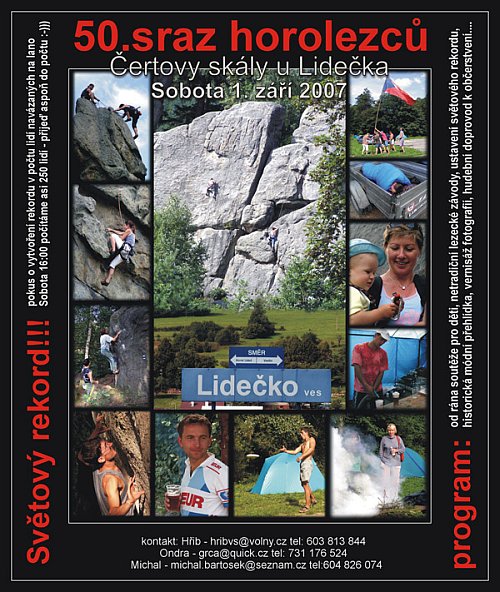 Čertových skalách u Lidečka kvůli už padesátému horolezeckému srazu. A. Veverka, B. Vaculín a mnozí další vynikající horolezci a také zakladatelé našeho horolezeckého oddílu by z nás měli radost. Nejenom sraz je výroční, ale také oddíl bude už šedesátiletý...