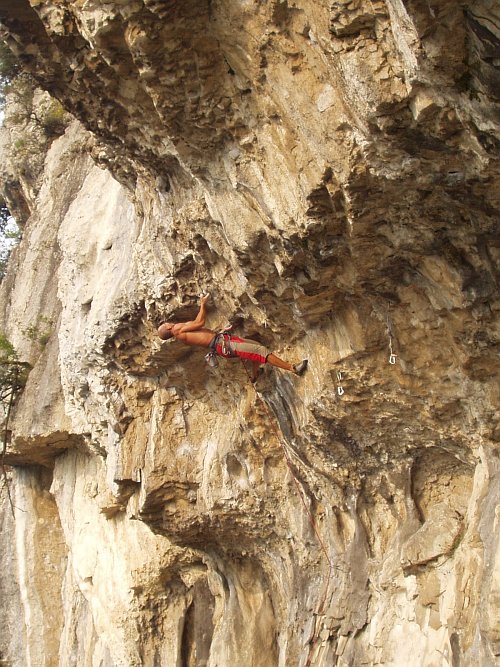 Nice Price 7b dole technika a stisky v krápnících, pak technika po malých v plotně a nakonec síla po lištách v mírném převisu, úžasná cesta