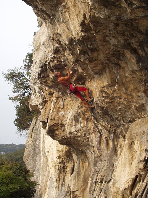 Luca Joint 6c+ silové lezení po dobrých chytech v převisu
