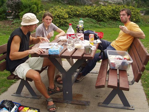 Falesia Policro Muro je narvaná k prasknutí, není, kde zaparkovat, není, kde lézt,všude visí lana, míhají se maskáče jednotky alpinů, běhají děti, řev, odtahovka už nakládá páté auto nějakého naivy, co zaparkoval za zákazem stání.