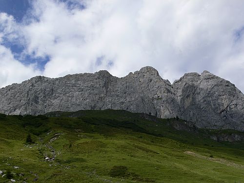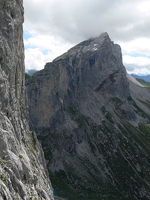 Pohled z 5. štandu Silbergeiera na  Schweizereck s cestou Zub za zub