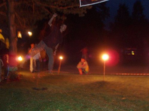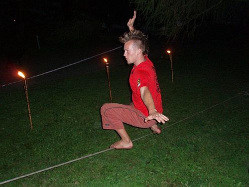 Co se závodů týká, pravidla byla následující: Chůze po kratší nízké lajně s triky, které byly kolo po kole složitější. Kdo nedal, nešel do dalšího kola. Kdo vydržel až do sedmýho, šel do finále, které se konalo na dlouhé lajně napnuté cca v metru a půl na tzv. freestyle. Tam už zbývalo jen zaujmout publikum ať už strojově dokonale předvedenými triky v podání Stefana z Drážďan, či téměř neskutečnou vůlí udržet se na lajně i hlavou dole v podání Toma.
