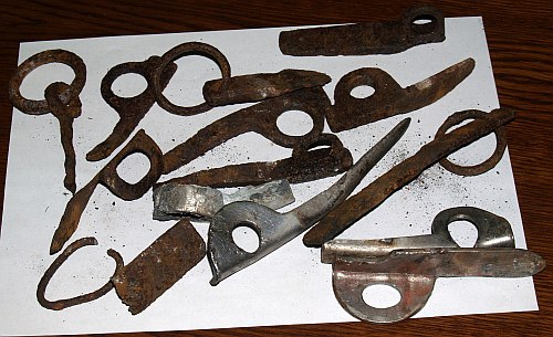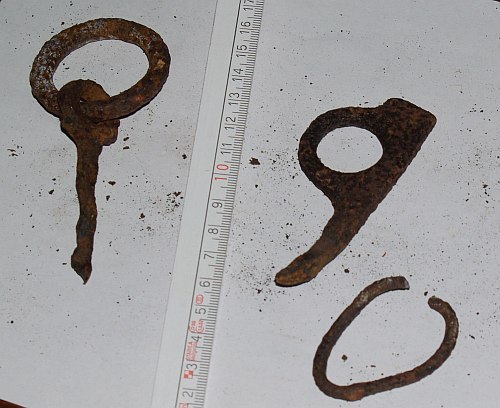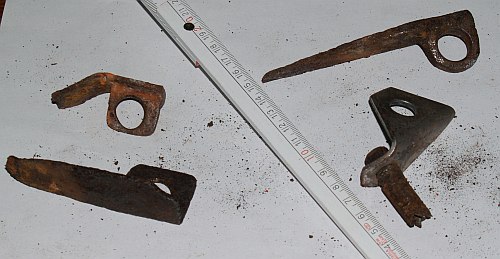 No a to, co jsme vytloukli, vidíte na fotkách. Někdy není úplně pěkné, nechat se unášet fantazií, při tomhle pohledu.  Např. první skoba v nástupu na Šimdu – horizontálka délky 1 cm ve skále a materiál – poctivá škodovácká čorka. A nebo první kroužek ze středu Svatební. Můj na klíčích má dvojnásobný průměr.