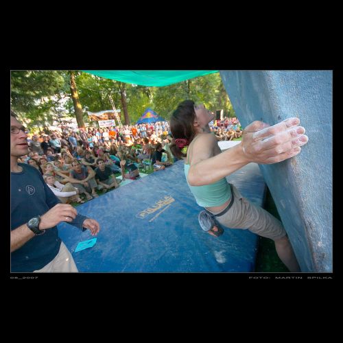Ženské finále se bohužel tolik nepovedlo jako předchozí kvalifikace a první tři bouldery byly až příliš lehké. Došlo také k fatálnímu nedorozumění mezi mnou a Chosém, kdy jsem chtěl ještě narychlo ztížit čtyřku a chyt, který se měl pouze nahradit horším byl odstraněn ouplně a boulder se stal zcela nelezitelným :). Finální pořadí holek nakonec určilo pořadí z kvalifikace, a na to bohužel doplatila Lenka Černá, která zaváhala na prvním boulderu a skončila tak až na pátém místě. Prvenství si vylezla Nelly Kudrová, druhá Zuzka Čintalová a třetí byla Helča Lipenská.