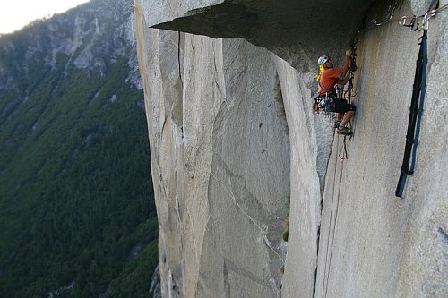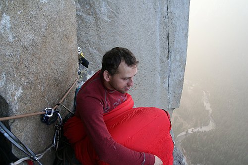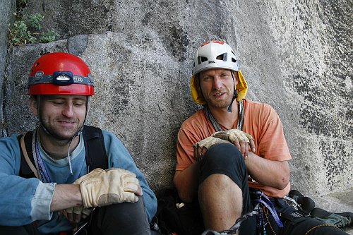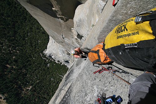 Dvakrát jsme bivakovali ve stěně a poslední noc jsme strávili na vršku. První den jsem vylezli první 4 délky na Sickle Ledge, kde jsme nechali věci, svini a slanili jsme dolů. Celkem tedy 4 dny lezení.