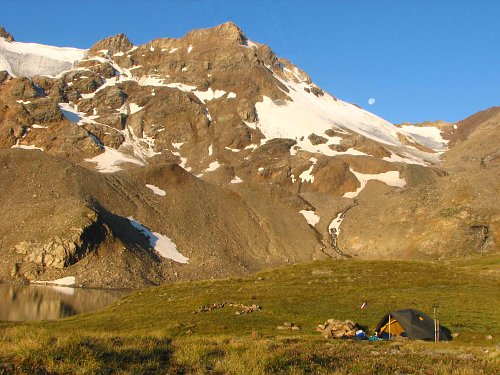 Sestup proběhl oddychovým tempem, v polospánku jsme dorazili do stanu kolem půl jedné a okamžitě jsme zalehli. Večer jsme ještě omrkli sídlo našich 6 kolegů ze zájezdu, kteří se dnes aklimatizovali a na vrchol chtěli jít zítra. V mlze a sychravu jsme jim sdělili zážitky a již za mrholení se vydali na kutě. Kdoví, jak bude ráno - nebe nevypadalo moc dobře. Noc, co se týče spánku, byla lepší předešlé a probudil nás jen rachot kamení. Tušili jsme, co to bylo a překvapivě nádherné ráno nám naši domněnku potvrdilo. Náš závětrný kámen velikosti auta se i s pamětní deskou zřítil asi 50m do údolí.