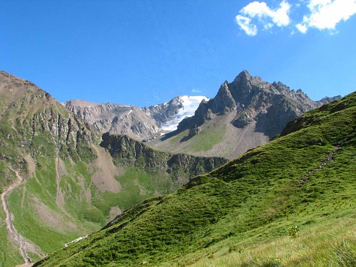 Konec údolí Irik, vlevo sedlo Chatkara