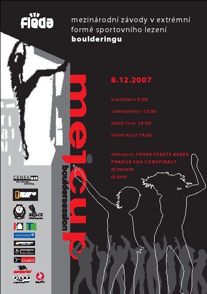 Tak helejte se. 8.12.2007  se v Brně na Flédě sejde, sjede a potká každej, kdo si nechce nechat ujít dlouho očekávanou akci, která se, bůhvíproč, jmenuje MEJCUP. Jelikož se zjistilo, že bouldering, pařba a music jde  náramně dobře dohromady, nebudeme ani letos na tomhle nic měnit a pořádně si to užijem.