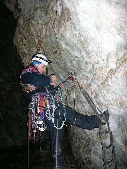 • Pro jištění je nejlepší plné lano 80 m, jako doplňující se používá 60 m tenkého lana na tahání batohu a posílání materiálu, absolutní nezbytností je fix (minimálně 70 m) statického lana pro případnou sebezáchranu, nebo záchranu spolulezce z klenby, jakákoli pomoc zvenčí není pro lezce v klenbě v některých místech možná!!!