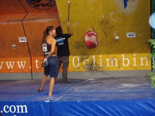 Favorité neunášejí tíhu finále a nedaří se jim. Po mnoha pokusech na posledním bouldru konečně dávám druhý krok a dolézám na top (později, se dozvídám, že stavěč si o mé variantě přelezu myslel, že je - impossible). Kvůli množství nakonec o jeden jediný pokus končím druhý.