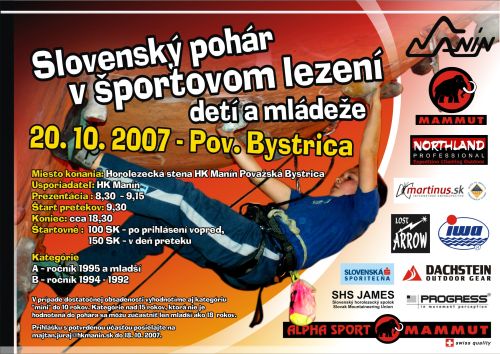 smSlovenský pohár ve sportovním lezení dětí a mládeže v Povážské Bystrici se pořádá 20. října 2007.