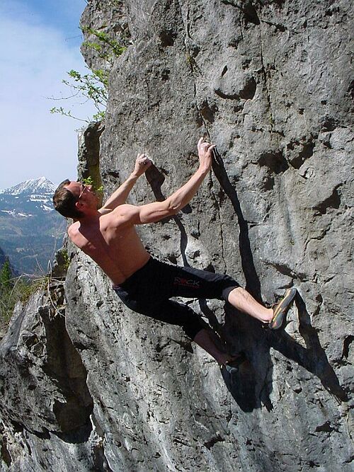 Ze Saussoiss jsme se přemístili do St. Loup ve Švýcarsku, kde padlo "La vie, l´universe et le reste" - ultraboulderové 8c od Nikolů (vpodstatě 4 kroky a trochu omáčky před a po, 3. pokus). Druhý den ještě lehce prohlédnout "Bain de Sang 9a" a odjezd do Lorüns v Rakousku.
