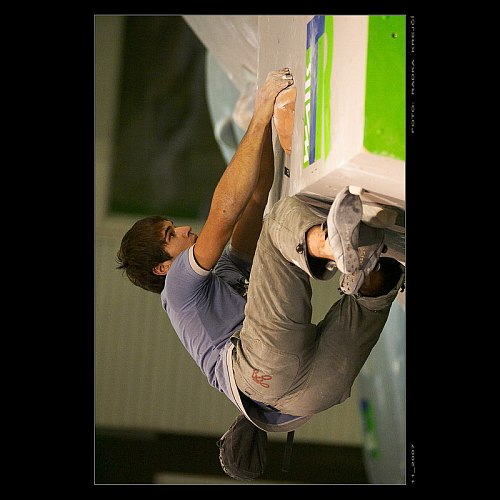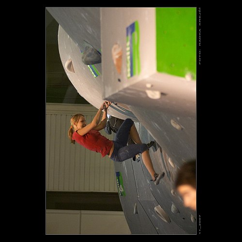 Kvalifikace i finále mužů a žen běželo současně, protože to kapacita závodní scény dovolovala a hlavně také proto, že jsme byli limitováni časem ukončení celého závodu. Lezlo se tedy celkem osm boulderů najednou a diváci se měli rozhodně na co koukat. Mužská kvalifikace byla trochu podceněná, ale omluvou budiž fakt, že kluci stavěči už byli řádně dojebaní ze svěťáku a při zkoušení se bouldery jevily jako optimální. Na druhou stranu si celé závodní pole kromě čtyř borců šáhlo na top a všichni si myslím dobře zalezli. Do finále postoupilo 12 lezců z nichž 10 se stejným výsledkem. Tři topy na první pokus a čtvrtý boulder držený poslední chyt. Takovéhoto výsledku však bohužel nedosáhl boulderový mág Milan Monroe Řehák…