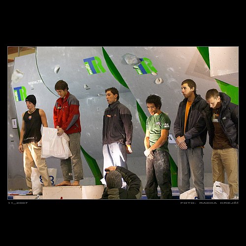 Na každém boulderu se posunovaly hranice předchozích lezců. A každý boulder měl svého přelezce. Se třemi topy suverénně vyhrál účastník finále SP Martin Krutor Stráník, který se tak stal Mistrem ČR v boulderingu pro rok 2007. Druhý byl slovenský reprezentant David Šatánek, který jako jediný topoval boulder číslo tři a třetí místo si vychutnal Štěpán Stráník, který si jistě spravil náladu za závod v Teplicích a stal se tak vícemistrem ČR.