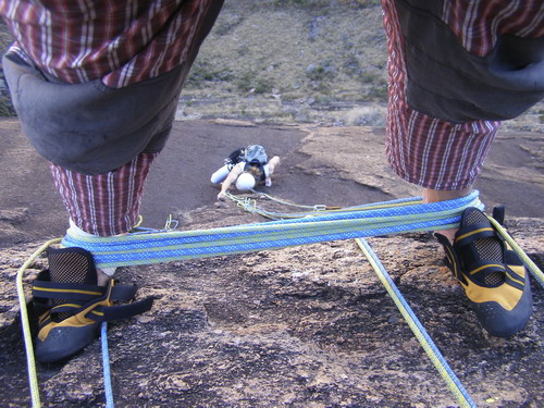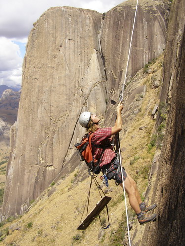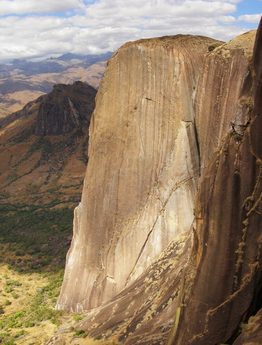 Skála je zde velmi ostrá a obsahuje velké množství nejrůznějších výběžků, které jsou takřka ideální pro různé zasekávací hrátky s lanem. Tyto výběžky (různé talířky, puklinky, hrotíky) v kombinaci s lany Tendom Master 7.8 mm, 70 m, jsou typickou ukázkou příčiny mnoha a mnoha errorů. To, že jsme museli několikrát (vlastně téměř při každém slanění) pro lana někam popolézt, odněkud složitě vyzvonit nebo rozmotat super obří uzel, by se dalo snést, člověk vlastně ani nic jiného nečeká, ale to, že při prvním slanění přímo pod vrcholem zjistíme, že jedno z našich dvojčat je ve 40-ti metrech až na jádro přeřízlé, to se očekávat vůbec nedalo. Nechápeme a nedokážeme si vysvětlit, jak je něco takového možné. Naše západní racionální myšlení na Madagaskaru poprvé selhává. Žádný vědomý oděr nenastal, žádný ostrý pád a i kdyby, jedná se přeci o nová lana! Po tolika letech co lezu se mi ani po jakémkoli pádu přes hranu ještě nikdy takto sundat oplet nepodařilo, tudíž o co jde je pro nás nevysvětlitelnou a mystickou záhadou. Mimozemšťané anebo sabotáž ze strany Lanexu? Nevím, druhá varianta je však pravděpodobnější. V každém případě Tendom Master 7.8 mm si už nikdy ani já ani Dano nepořídíme!