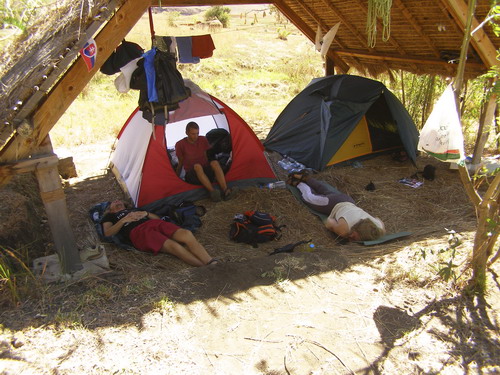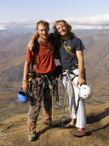 Na natáčení prvolezců během slanění však bohužel tentokrát nedošlo, protože krátce po našem spočinutí na vrchole začalo pršet. Ano, pršet! Také jsem netušil, že je něco takového v září na Madagaskaru možné. Po předchozích negativních slaňovacích zkušenostech je rozhodnutí jasné. Spíš než slaňování v dešti volíme pěší sestup a zhruba za dvě hodiny jsme celí promočení zpátky v kempu.