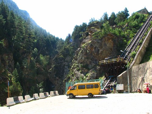 Ruslan, kde jsme nakoupili za 60 RUR neskutečné množství jídla. Především vynikající uzené sýry. Chtěl jsem z profesního hlediska shlédnout v průvodci zmiňovanou zdviž pro vozidla na začátku údolí Adyrsu, což se také povedlo. Potkali jsme tam výpravu, se kterou jsme se již střetli u Osmana, která právě sestupovala z tohoto údolí. Celou cestu údolím nepopisovali jako příliš záživnou a my jsme se tam ani nehrnuli. Náš cíl pro zbývající dva dny bylo údolí Schelda a dle situace obhlídka nástupu do Ušbiského ledopádu.