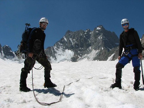 U Osmana jsme se moc neohřáli doplnili jsme vodu a vydali se vstříc údolí Schelda, kde nástupní trasa začíná  průchodem Alplágeru Schelda. Asi po dvou kilometrech jsme narazili na pohraničníky. S okopírovaným propuskem jsme pokračovali v děsném horku vstříc ledovci. Po dalších dvou kilometrech jsme museli projít již opuštěnou celní základnou s ostnatými dráty a polorozpadlými budovami.