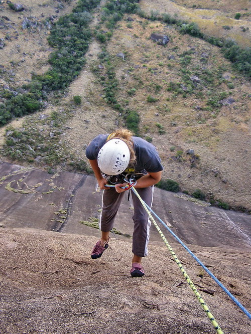 Hijos končí 3 délky pod vrcholem Tsaranoro Kely, kde se napojuje do linie Norspace. Řídíme se radami prvovýstupců a slaňujeme dolů. Po předchozích negativních zkušenostech máme obavy, ale tentokrát vše probíhá v naprosté souhře a harmonii. Slaňujeme asi hodinu a půl a je tu podlaha! Jak krásný pocit znovu přistát na pevné zemi.